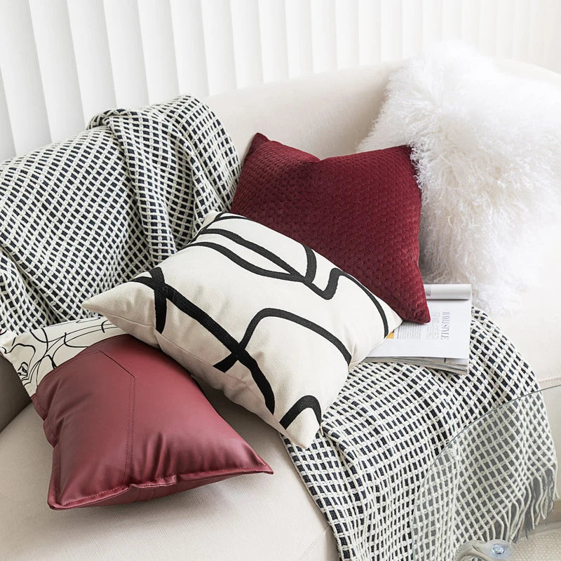 Modern Minimalist and Luxurious Cushion Cover Nordic Wine Red Suede Abstract Art Cushion Covers Sofa Bedside Throw Pillow covers